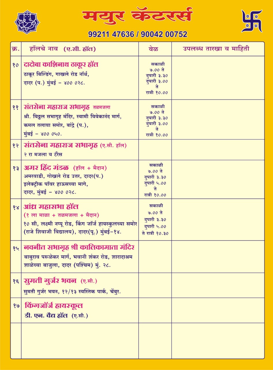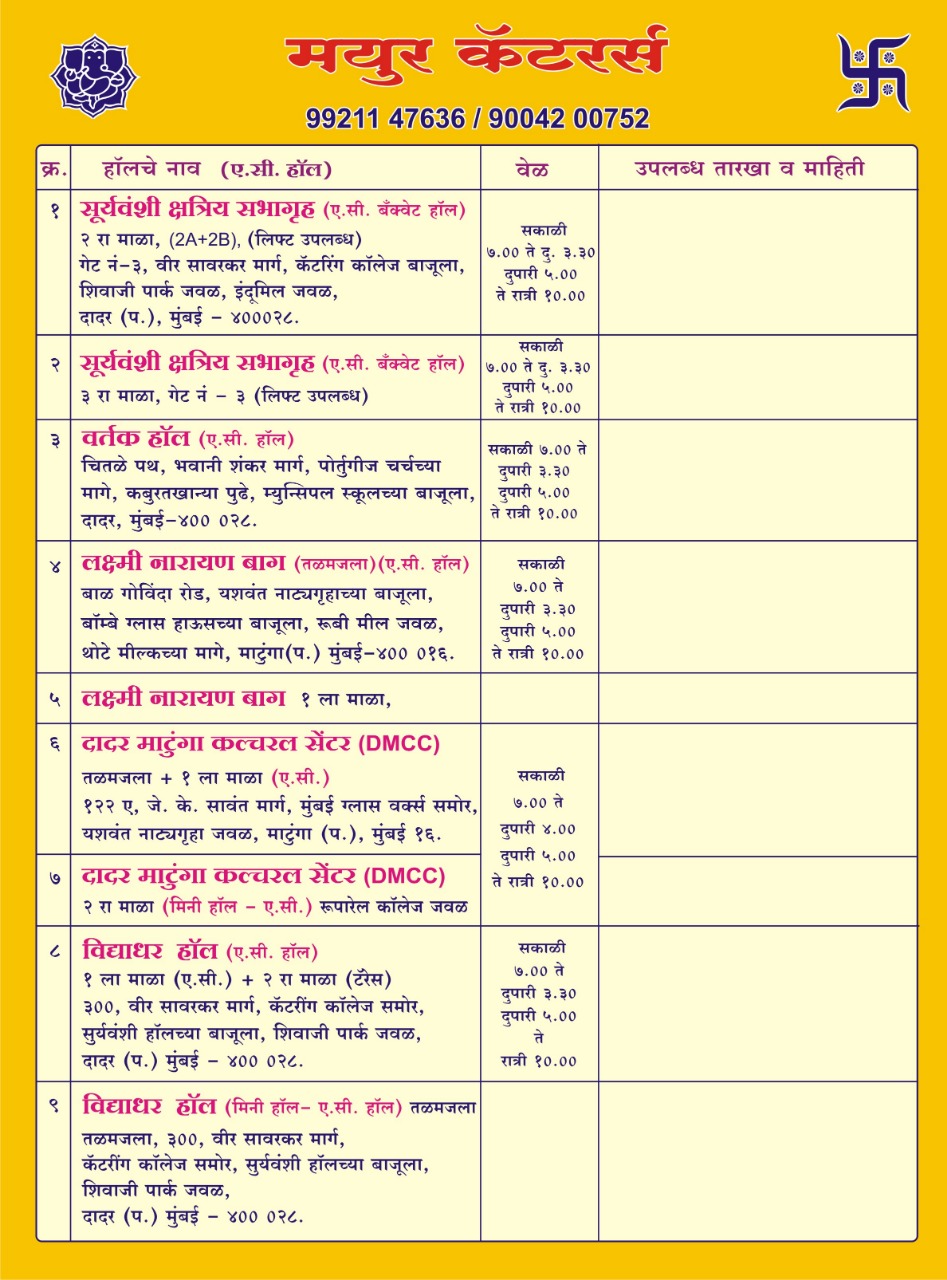 - Mayur Caterers hires buses (Priyanka Tour and Travels) for travels and wedding guests.