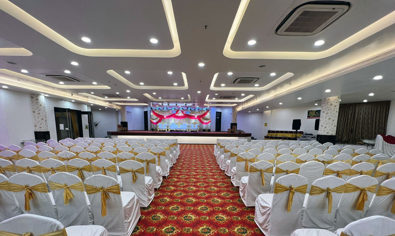 - Venue available for 50 to 2000 people, AC and Non-Ac halls, Lawn and grounds are available for wedding, reception, family get-togather, birthday party, etc